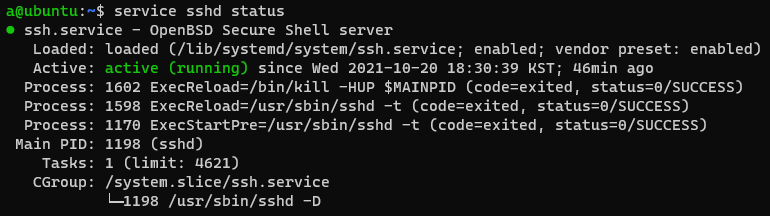 # 혹은 service ssh start 혹은 systemctl start openssh-server 혹은 service openssh-server start