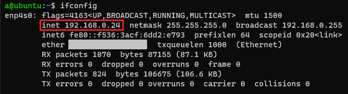 (7) ifconfig 명령어로 주소를 알아낸다.