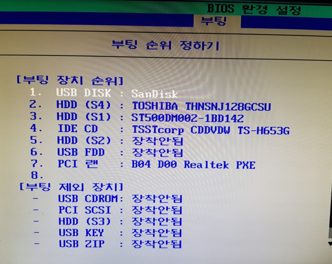 F2를 눌려서 부팅 순서를 바꾼다. ssd가 첫번째로 부팅되게 한다.