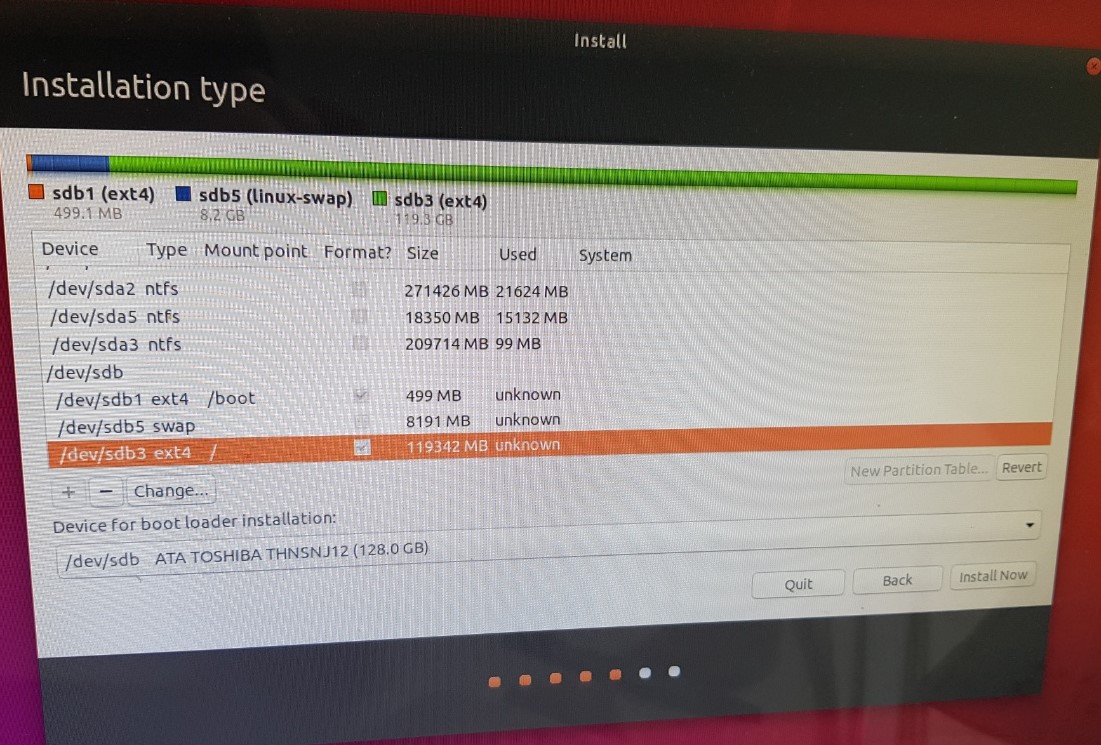 | 파티션 옵션) 총 3개의 파티션을 설정한다. (1) boot : 500MB 물리 파티션으로 설정한다. (2) swap : 8GB // 최대 절전 기능을 사용하기 위해서는 설치된 물리적 램 용량을 초과해야 한다. 그래서 8GB로 설정해 주었다. // 최대 절전 기능을 사용하지 않는다면 1GB로 설정해 주어도 충분하다. (3) / : 파일 포맷 형식은 ext4로하고 나머지 용량을 전부 할당해 준다. 시스템이 사용할 용량이 되게 된다. |