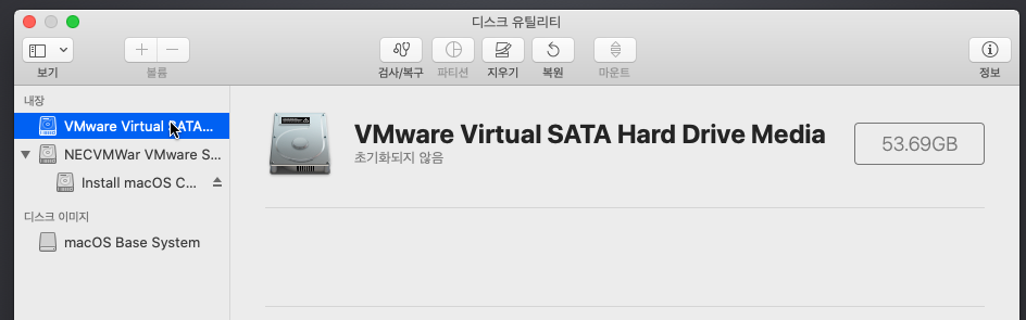VMware의 VMware tools를 설치했더니 가상 맥 os가 제대로 동작하지 않았다.