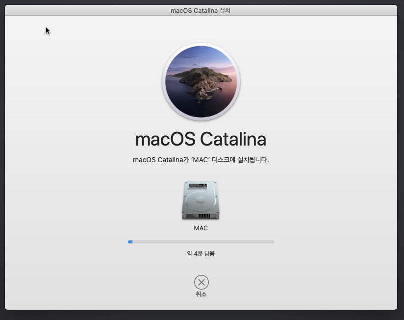 cmd창이 나오면서 설치가 진행된다. 설치가 다 끝날때까지 기다려준다. 이 과정을 진행하지 않으면 VMware workstation 프로그램에서 가상OS 설치시 맥OS 선택 버튼이 나오지 않기 때문에 반드시 선행해서 진행해 주어야 한다.