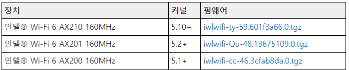 Wi-Fi 어댑터를 포함한 인텔® 무선 제품용 Linux* 드라이버 지원 정보.