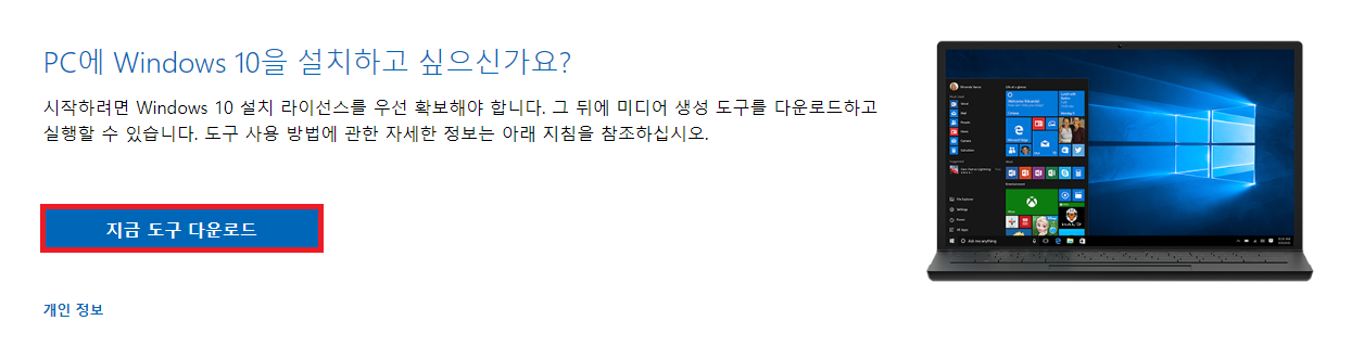 지금 도구 다운로드 버튼을 누르면 소프트웨어 다운이 진행된다.