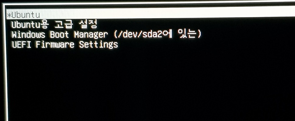 우분투 boot loader 프로그램인 grub이 뜨지 않고 바로 윈도우가 실행되거나 우분투가 실행된다면 듀얼 OS 설치가 제대로 되지 않은 것이다.