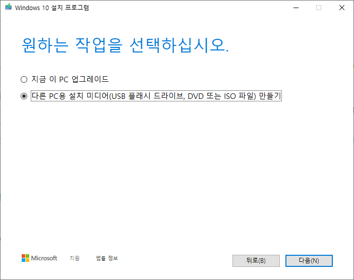 윈도우에서 정식으로 제공하는 윈도우 설치 USB 설치 툴이다.