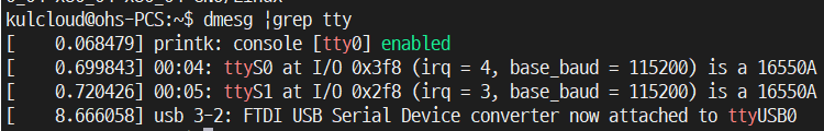 dmesg 디바이스 명이 확인되었으니 이제 minicom으로 접속할 수 있다.