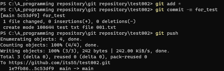 다음과 같은 명령어를 통해 현재 로컬 디바이스(현재 컴퓨터) 폴더 파일을 깃허브 레포지토리에 업로드한다.