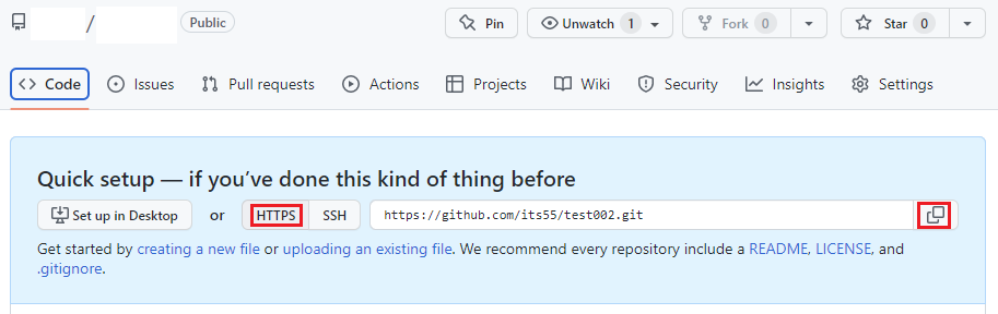 Code 탭에서 HTTPS를 클릭하고 네모 두개가 겹쳐진 버튼을 클릭해 링크를 복사한다.